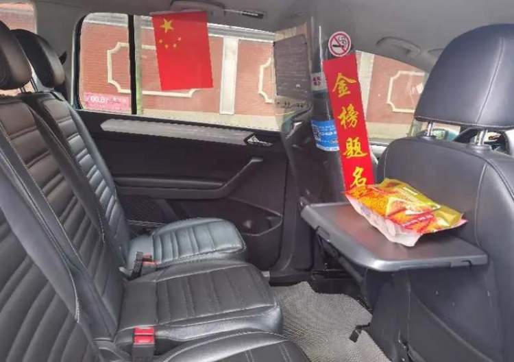 车厢内布置着驾驶员对考生的祝福语,还摆放着便民“礼包”↓