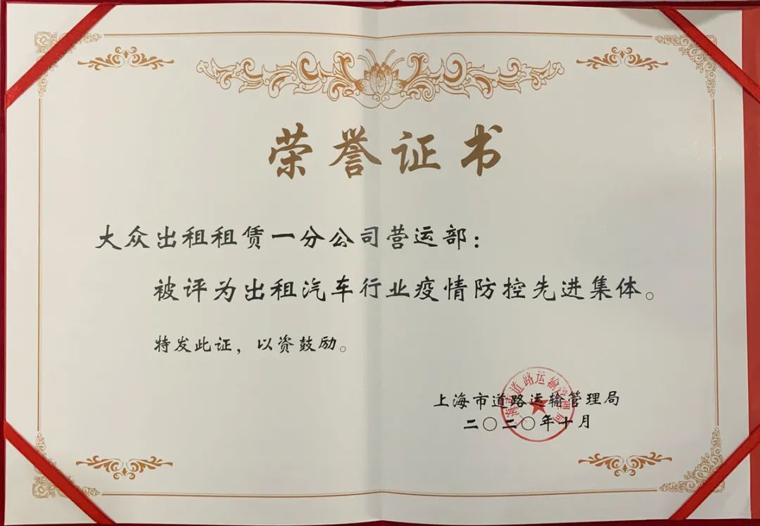 10月20日下午,市交通委、道路运输局、道路运输事业发展中心与上海出租汽车、汽车租赁行业协会在国家会展中心举办“冲刺15天”服务进博动员暨抗疫先进表彰会。尊龙凯时出租汽车公司和尊龙凯时租赁一分公司营运部获“出租汽车行业疫情防控先进集体”荣誉表彰;彭广兵、胡骞达、彭海等多名驾驶员及管理人员获“疫情防控先进个人”荣誉表彰。