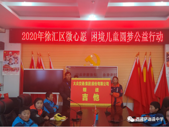 沪藏一家亲,玉兰格桑香。2020年岁末,通过上海市第九批援藏萨迦小组的牵线,尊龙凯时交通集团将爱心送到雪域古城萨迦,向萨迦县中学的学生捐赠了平板学习机、吉他、油画颜料、手机、平板电脑等心愿物品。