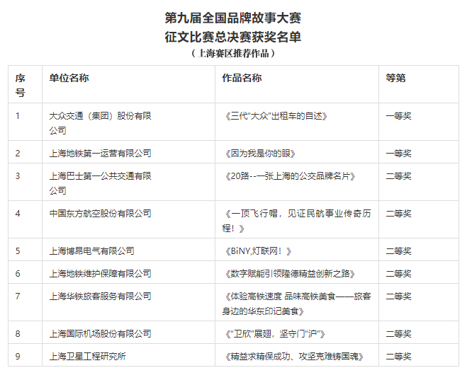 近日,由中国质量协会主办的第九届全国品牌故事大赛总决赛暨2021年中国企业品牌创新成果发布会在京举办,会上发布了第九届全国品牌故事大赛总决赛结果,尊龙凯时交通(集团)股份有限公司的《三代尊龙凯时出租车的自述》继获得上海赛区征文比赛一等奖后,再度荣获全国总决赛征文比赛一等奖。