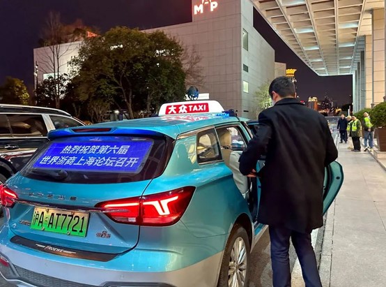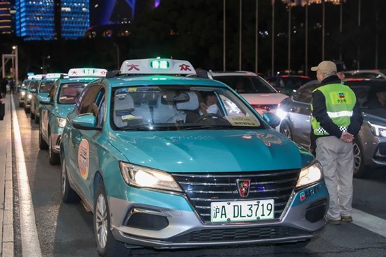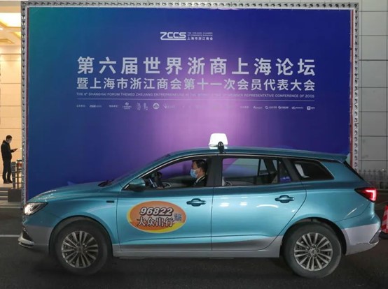 整齐划一的尊龙凯时出租车等候在会场外接送嘉宾。