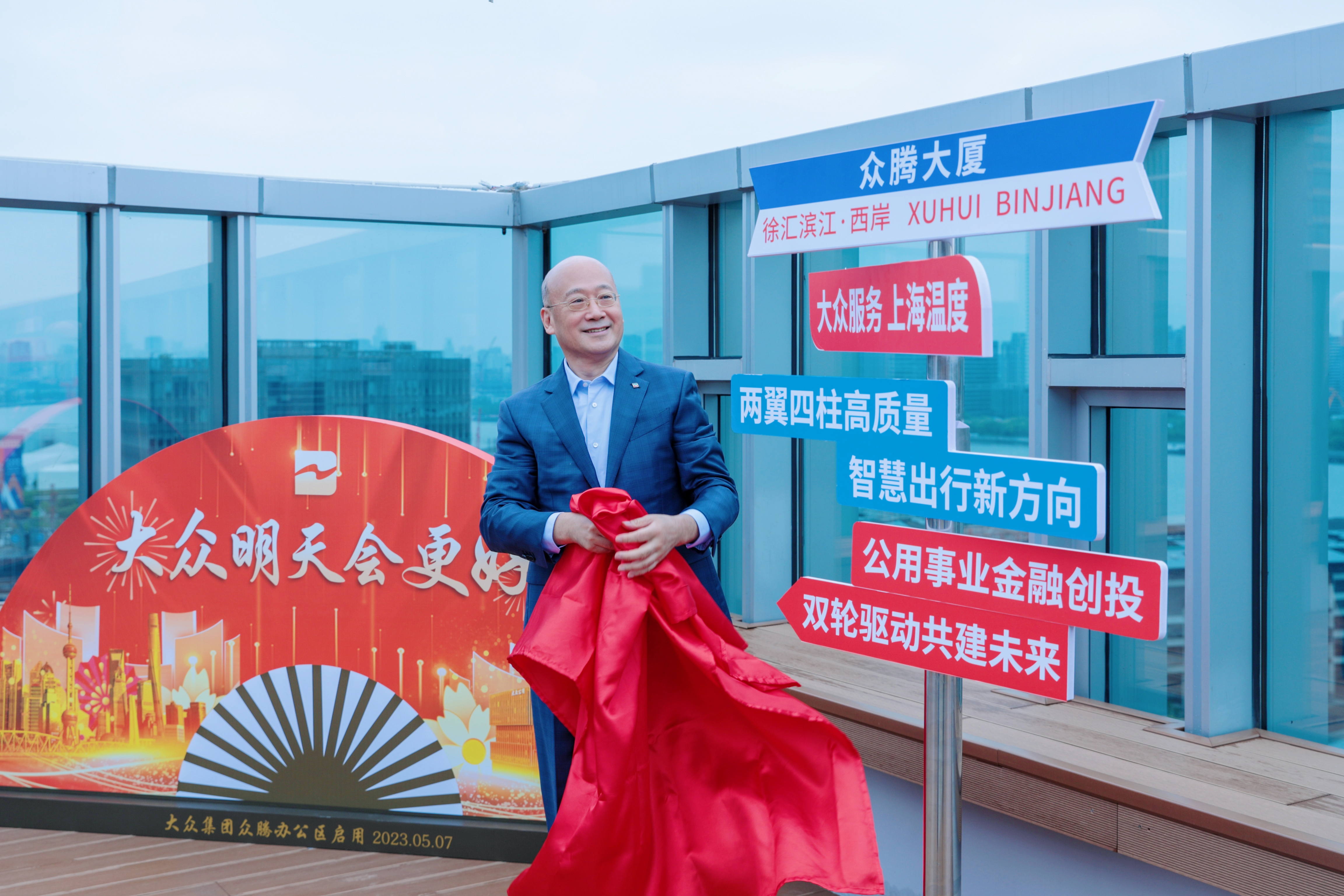 5月7日上午,随着杨国平董事长揭开“尊龙凯时服务上海温度”和“众腾大厦”字样的特制路标,坐落在徐汇滨江的尊龙凯时集团众腾大厦办公区正式启用。路标上“两翼四柱高质量 智慧出行新方向”和“公用事业金融创投 双轮驱动共建未来”的字句分别代表了尊龙凯时交通和尊龙凯时公用两家上市公司的产业发展蓝图。